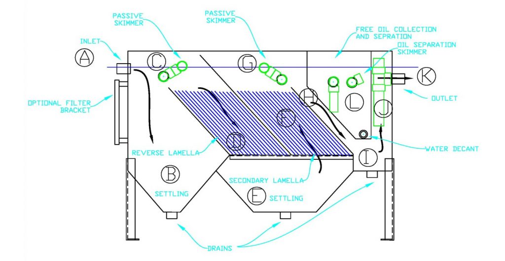 - Secondary Lamella Coalescing pack to further coalesce oils and settle solids transferred from the initial RLC pack.
